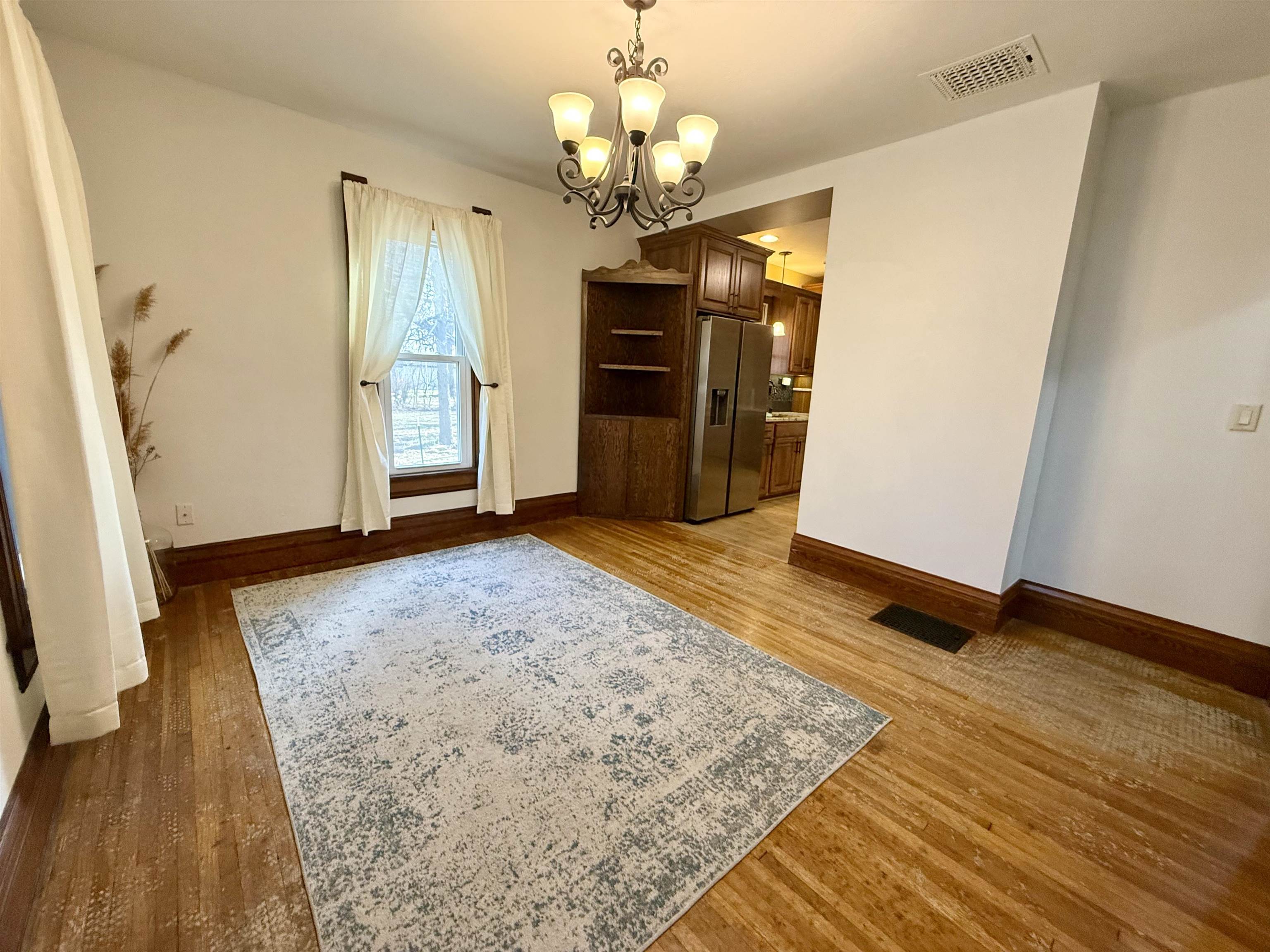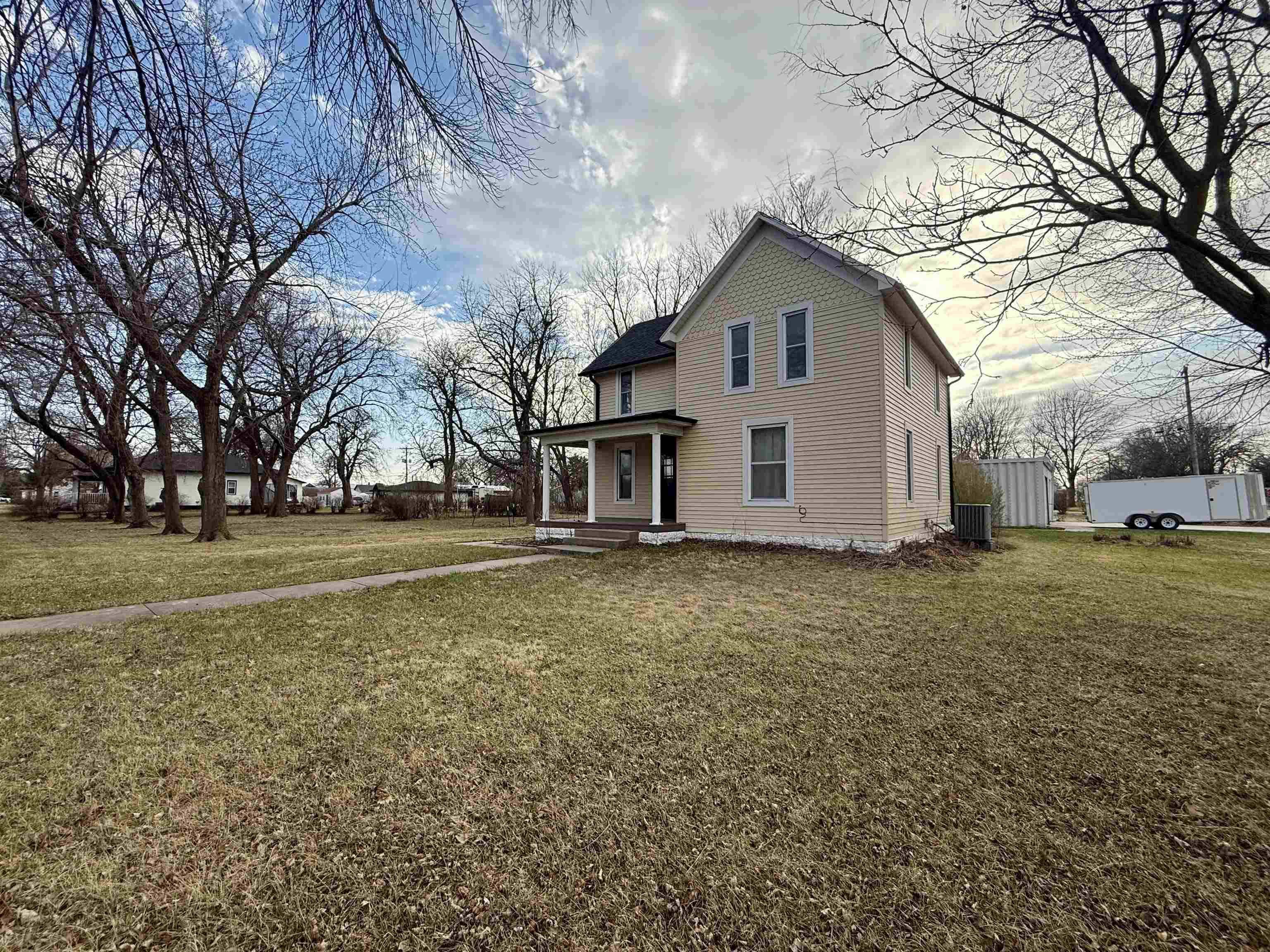 Small Town Living! Check out this 5 bedroom, 1 bathroom updated home which features an updated kitchen, main floor laundry, newer windows, newer roof, hardboard siding, hardwood floors, a formal dining room, plus so much more! The home is situated on a large corner lot with an additional two lots and features a large patio and an oversized, heated 2 car garage. Both parcels are included in the purchase of this property. Call for a showing today!