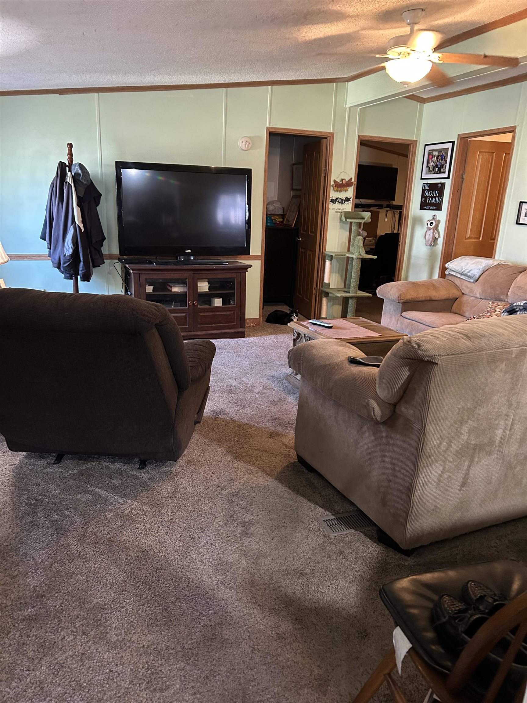 This 3 bedroom, 2 bathroom mobile home offers comfortable main floor living. The home features a spacious primary suite with a private bath, along with two additional bedrooms. Enjoy the convenience of main floor laundry and an open living space. Additional highlights include attached covered parking, an extra outdoor parking space, and a storage shed. Call today for a showing!